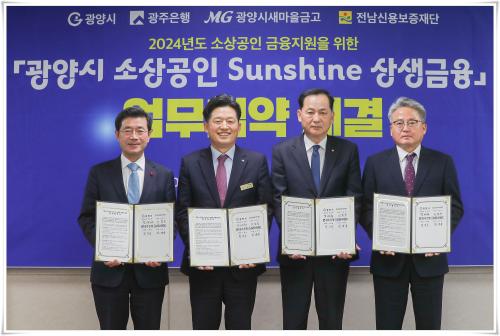 [½Åµ¿¾Æ¹æ¼Û±¤¾ç=¹Ú±¤¿Á±âÀÚ] ±¤¾ç½Ã°¡ Áö³­ 16ÀÏ Àü³²½Å¿ëº¸ÁõÀç´Ü, ±¤ÁÖÀºÇà, ±¤¾ç½Ã»õ¸¶À»±Ý°í¿Í ¡º±¤¾ç½Ã ¼Ò»ó°øÀÎ Sunshine »ó»ý±ÝÀ¶ ¾÷¹«Çù¾à¡»À» ü°áÇß´Ù. À̹ø Çù¾àÀº ´ëÃâÀÌ ¾î·Á¿î ±¤¾ç½Ã ¼Ò»ó°øÀÎÀÇ À¶ÀÚ ºÎ´ãÀ» ´ú¾îÁÖ°í °æ¿µ¾ÈÁ¤À» µµ¸ðÇϱâ À§ÇÑ ¸ñÀû¡¦