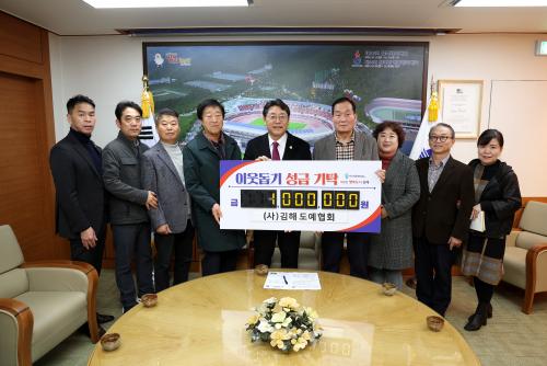 [½Åµ¿¾Æ¹æ¼Û´º½º=ÃÖ¼ÛÈ­±âÀÚ] ±èÇØ½Ã´Â 19ÀÏ ±èÇØµµ¿¹Çùȸ(ÀÌ»çÀå ±è±¤¼ö)¿¡¼­ ÀÌ¿ôµ½±â ¼º±Ý 100¸¸¿øÀ» ±âŹÇß´Ù°í ¹àÇû´Ù. ¼º±ÝÀº Áø·Ê¸é Áö¿ª»çȸº¸ÀåÇùÀÇü¿¡ ÀüÇØÁ® º¹Áö»ç°¢Áö´ë Ãë¾à°èÃþÀ» À§ÇØ ¾²ÀδÙ. À̹ø ¼º±ÝÀº Áö³­ ¼³À» ¾ÕµÎ°í ±èÇØºÐûµµÀÚÀü½ÃÆÇ¡¦