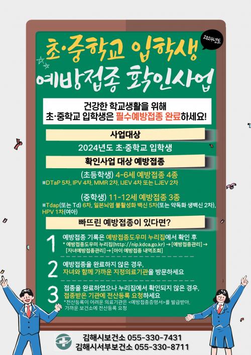 [½Åµ¿¾Æ¹æ¼Û´º½º=ÃÖ¼ÛÈ­±âÀÚ] ±èÇØ½Ã´Â 2024³âµµ ÃÊ‧ÁßÇб³ ½ÅÀÔ»ýµéÀÇ Çʼö ¿¹¹æÁ¢Á¾ ÈÄ ÀÔÇÐÀ» ±Ç°íÇÑ´Ù°í 16ÀÏ ¹àÇû´Ù. ½Ã´Â °¨¿°º´ ¿¹¹æ°ú Áý´Ü¸é¿ª È¿°ú Á¦°í¸¦ À§ÇØ Çʼö ¿¹¹æÁ¢Á¾ ¿Ï·á ¿©ºÎ¸¦ È®ÀÎÇØ ¹ÌÁ¢Á¾ÀÚ´Â À§Å¹ÀÇ·á±â°ü¿¡¼­ Á¢Á¾À» ¸¶Ä¥ °ÍÀ» ´ç¡¦