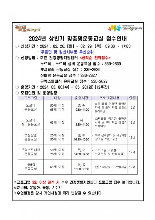 ÁÖÃ̰ǰ­»ýȰÁö¿ø¼¾ÅÍ, ¡®»ó¹Ý±â ¸ÂÃãÇü ¿îµ¿±³½Ç¡¯ ´ë»óÀÚ ¸ðÁý