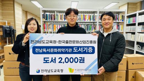 [½Åµ¿¾Æ¹æ¼Û Àü³²¿©¼ö=À̽ŵ¿±âÀÚ]Àü¶ó³²µµ±³À°Ã»ÀÌ 22ÀÏ Àü³² µµ³» µ¶¼­¹®È­Ãë¾à ±â°ü 5°÷¿¡ °¢ 400±Ç¾¿ ÃÑ 2,000±ÇÀÇ µµ¼­¸¦ ±âÁõÇß´Ù. À̹ø µµ¼­ ±âÁõÀº Áö³­ÇØ Çѱ¹ÃâÆÇ¹®È­»ê¾÷ÁøÈï¿ø(¿øÀå ±èÁØÈñ)°ú ü°áÇÑ ¡®µ¶¼­Àι®±³À° ȯ°æ¡¤»çȸ¡¤Åõ¸í °æ¿µ(ESG) ¾÷¹«Çù¡¦