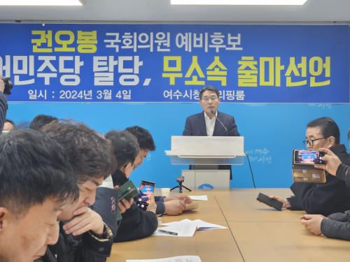 [½Åµ¿¾Æ¹æ¼Û ¿©¼ö=±è±â³² ±âÀÚ]±Ç¿ÀºÀ ±¹È¸ÀÇ¿ø ¿¹ºñÈĺ¸ ¹ÎÁÖ´ç °æ¼±¿¡ ¹Ý¹ßÇØ Å»´ç ÈÄ ¹«¼Ò¼ÓÀ¸·Î Ã⸶¸¦ °­ÇàÇß´Ù. ±Ç È帴 4ÀÏ ¿©¼ö½Ãû ºê¸®Çη뿡¼­ ±âÀÚȸ°ßÀ» ÀÚÃ»ÇØ ¡°¹ÎÁÖ´ç °æ¼±Àº ÀÌ¹Ì Â¥¿©Áø °¢º»´ë·Î ÁøÇàµÈ °Í¡±À̶ó°í ÀüÁ¦ÇÑ µÚ ¡°ÀÚ½ÅÀ» Á¦¿ÜÇÑ Ã¤¡¦