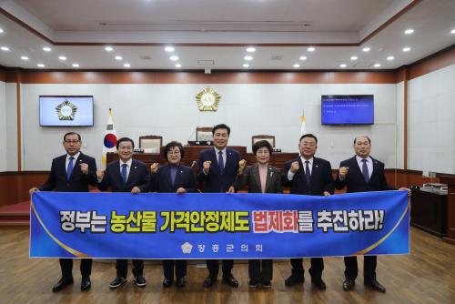 [½Åµ¿¾Æ¹æ¼Û=ÀåÈï À̼±Á¾ ±âÀÚ] ÀåÈﱺÀÇȸ À±Àç¼÷ ÀÇ¿øÀÌ ´ëÇ¥ ¹ßÀÇÇÑ ¡®³ó»ê¹° °¡°Ý¾ÈÁ¤Á¦µµ¡¯¹ýÁ¦È­ Ã˱¸ °ÇÀǾÈÀ» Á¦288ȸ ÀÓ½Ãȸ Á¦1Â÷ º»È¸ÀÇ¿¡¼­ 7¸í ÀÇ¿ø ¸¸ÀåÀÏÄ¡·Î äÅÃÇß´Ù. À± ÀÇ¿øÀº °ÇÀǹ®À» ÅëÇØ ¡®»ç°ú ÇÑ ¾Ë 1¸¸¿ø ½Ã´ë¡¯¶ó´Â ¸»Ã³·³ ³ó»ê¹° ¡¦