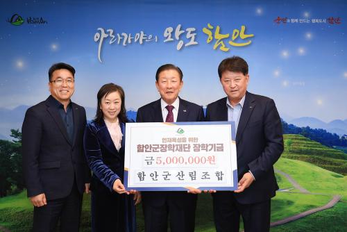 [½Åµ¿¾Æ¹æ¼Û ÇÔ¾È=À̽ŵ¿±âÀÚ]ÇԾȱºÀåÇÐÀç´ÜÀº 6ÀÏ ¿ÀÀü 11½Ã ÇԾȱº»ê¸²Á¶ÇÕ(Á¶ÇÕÀå ¾È»óÁÖ)¿¡¼­ ÀåÇбâ±Ý 500¸¸ ¿øÀ» ±âŹÇß´Ù°í ¹àÇû´Ù. À̳¯ ±âŹ½Ä¿¡´Â ¾È»óÁÖ Á¶ÇÕÀå°ú ÀÌÁ¡±¸ »ó¹«, À̹̿µ »ó¹«°¡ Âü¼®ÇØ Áö¿ªÀÇ ±³À° ¹ßÀü°ú ÀÎÀç ¾ç¼ºÀ» À§ÇÑ ¶æÀ» ÀüÇϸ硦