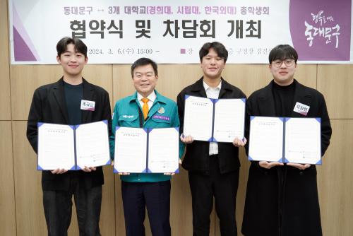 [½Åµ¿¾Æ¹æ¼Û µ¿´ë¹®=À̽ŵ¿±âÀÚ]¼­¿ï µ¿´ë¹®±¸´Â 6ÀÏ °æÈñ´ëÇб³, ¼­¿ï½Ã¸³´ëÇб³, Çѱ¹¿Ü±¹¾î´ëÇб³ ÃÑÇлýȸ¿Í ÇÔ²² µ¿´ë¹®±¸ û³âÁ¤Ã¥ ³»½ÇÈ­¿¡ »óÈ£ Çù·ÂÇÒ °ÍÀ» ¾à¼ÓÇß´Ù. Çù¾àÀÇ ÁÖ¿ä ³»¿ëÀº û³âÁ¤Ã¥ È«º¸ ¹× Àǰ߼ö·Å À§ÇÑ Çù·Âü°è ±¸Ãà, û³âÇà»ç ±âȹ ¡¦