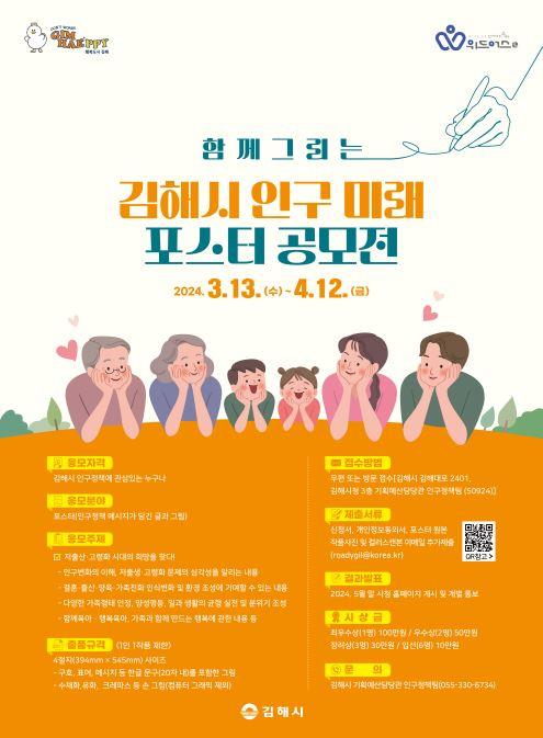 [½Åµ¿¾Æ¹æ¼Û´º½º=ÃÖ¼ÛÈ­±âÀÚ] ±èÇØ½Ã´Â ÀúÃâ»ý ¹®Á¦ÀÇ ´Ù¾çÇÑ Á¢±ÙÀ¸·Î ÁֹΠ°ø°¨´ë¸¦ Çü¼ºÇϱâ À§ÇÑ ¡®ÇÔ²² ±×¸®´Â ±èÇØ½Ã Àα¸ÀÇ ¹Ì·¡ Æ÷½ºÅÍ °ø¸ðÀü¡¯À» °³ÃÖÇÑ´Ù°í 13ÀÏ ¹àÇû´Ù. ¡®ÀúÃâ»ê °í·ÉÈ­ ½Ã´ëÀÇ Èñ¸ÁÀ» ã´Ù¡¯¶ó´Â ÁÖÁ¦·Î Àα¸¹®Á¦¿¡ ´ëÇÑ ½Ã¹Î °ü½Éµµ¸¦¡¦