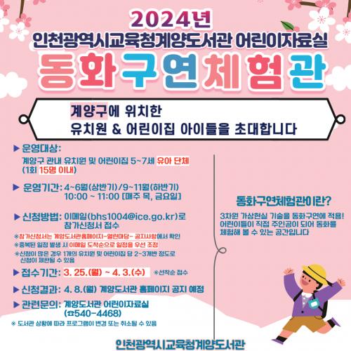 [½Åµ¿¾Æ¹æ¼Û ÀÎõ= À±¹Î½Ä ±âÀÚ]ÀÎõ±¤¿ª½Ã±³À°Ã»°è¾çµµ¼­°ü °üÀå ¿ÀÅÂȯÀº °è¾ç±¸ °ü³» À¯Ä¡¿ø°ú ¾î¸°ÀÌÁý À¯¾Æ¸¦ ´ë»óÀ¸·Î Á÷Á¢ µ¿È­ ¼Ó ÁÖÀΰøÀÌ µÇ¾îº¸°í üÇèÇÒ ¼ö ÀÖ´Â ¡¸µ¿È­±¸¿¬Ã¼Çè°ü¡¹À» 4¿ùºÎÅÍ 11¿ù±îÁö ¸ÅÁÖ ¸ñ, ±Ý ¿ÀÀü 10½ÃºÎÅÍ 1½Ã°£ µ¿¾È ¿î¿µÇÑ´Ù. ¡¦