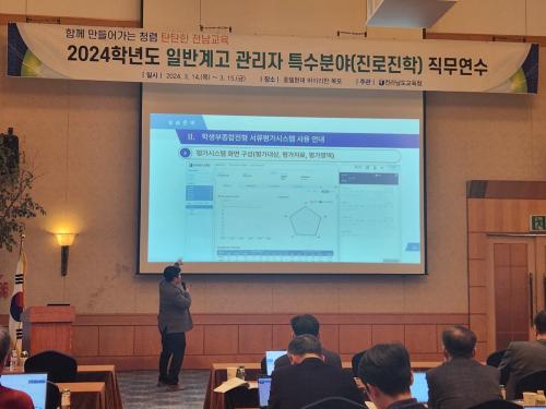 [½Åµ¿¾Æ¹æ¼Û Àü³²¿©¼ö=À̽ŵ¿±âÀÚ]Àü¶ó³²µµ±³À°Ã»ÀÌ ÀϹݰè°í Çб³Àå ¹× ±³°¨µéÀ» ´ë»óÀ¸·Î Áø·Î․ÁøÇÐ Á÷¹«¿¬¼ö¸¦ ¿­°í, ÀϹݰí Çз Çâ»ó°ú ´ëÀÔ °æÀï·Â °­È­ ¹æ¾ÈÀ» ³íÀÇÇß´Ù. Áö³­ 13~14ÀÏ È£ÅÚÇö´ë ¹ÙÀ̶óÇÑ ¸ñÆ÷¿¡¼­ ¿­¸° Á÷¹«¿¬¼ö¿¡´Â ÀϹݰè°í 91±³ Çб³¡¦