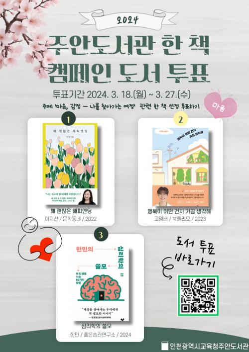 [½Åµ¿¾Æ¹æ¼Û ÀÎõ= À±¹Î½Ä±âÀÚ]ÀÎõ±¤¿ª½Ã±³À°Ã»Á־ȵµ¼­°ü °üÀå °û¹ÌÇý´Â ¿ÃÇØ ¡®ÇÑ µµ¼­°ü ÇÑ Ã¥¡¯ Ä·ÆäÀÎ µµ¼­ ¼±Á¤À» À§ÇÑ ½Ã¹Î Âü¿© ÅõÇ¥¸¦ 27ÀϱîÁö ÁøÇàÇÑ´Ù. ¿ÃÇØ ÇÑ Ã¥ Ä·ÆäÀÎ ÁÖÁ¦´Â ¡®¸¶À½¡¤°¨Á¤¡¯À¸·Î Á־ȵµ¼­°üÀº ½Ã¹Îµé¿¡°Ô ´Ù¾çÇÑ °ü·Ã ÁÖÁ¦ÀÇ µµ¼­¸¦¡¦