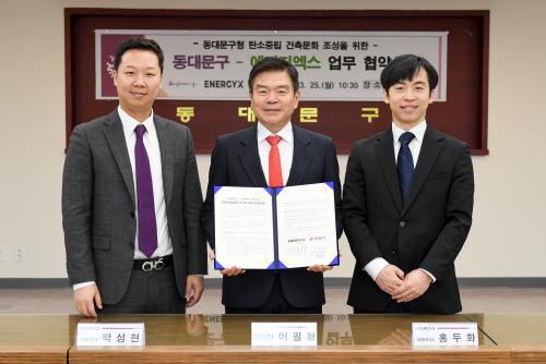 [½Åµ¿¾Æ¹æ¼Û µ¿´ë¹®=À̽ŵ¿±âÀÚ]¼­¿ï µ¿´ë¹®±¸(±¸Ã»Àå ÀÌÇÊÇü)´Â 25ÀÏ(¿ù) ¿¡³ÊÁö¿¢½º ÁÖ½Äȸ»ç¿Í ź¼ÒÁ߸³ °ÇÃ๮ȭ Á¶¼ºÀ» À§ÇÑ Á¦·Î¿¡³ÊÁöºôµù ¾÷¹« Çù¾àÀ» ü°áÇß´Ù. À̹ø Çù¾à½Ä¿¡´Â ÀÌÇÊÇü µ¿´ë¹®±¸Ã»Àå, ¹Ú¼ºÇö ¿¡³ÊÁö¿¢½º °øµ¿ ´ëÇ¥ÀÌ»ç, È«µÎÈ­ ¿¡³ÊÁö¿¢½º ¡¦