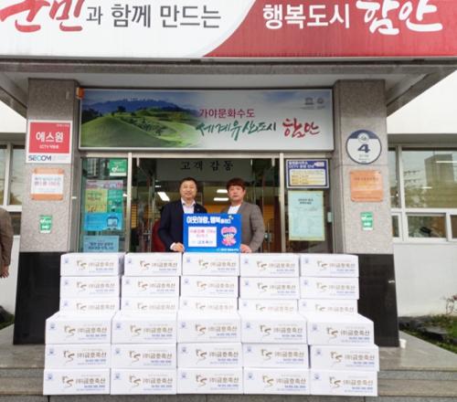 [½Åµ¿¾Æ¹æ¼Û ÇÔ¾È=À̽ŵ¿±âÀÚ]ÇԾȱº Ä¥¿øÀ¾¿¡¼­´Â ¢ß±ÝÈ£Ãà»ê(´ëÇ¥ ±èȿö)¿¡¼­ Á¤¼º²¯ ¸¶·ÃÇÑ ÇÑ¿ìÀâ»À 900kg(600¸¸ ¿ø »ó´ç)À» ±âŹÇß´Ù°í 27ÀÏ ¹àÇû´Ù. ±èȿö ´ëÇ¥´Â Áö¿ª»çȸ ¾î¸£½ÅµéÀÇ º¸¾çÀ» À§ÇØ ÇÑ¿ì Àâ»À¸¦ ±âÅ¹ÇØ µû¶æÇÑ º½Ã¶ ÈÆÈÆÇÑ ³ª´®ÀÇ ºÐÀ§±â¸¦¡¦