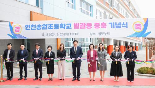 [½Åµ¿¾Æ¹æ¼Û ÀÎõ=À±¹Î½Ä±âÀÚ]µµ¼ºÈÆ ÀÎõ±¤¿ª½Ã±³À°°¨Àº 26ÀÏ ÀÎõ¼Û¿øÃʵîÇб³ º°°üµ¿ ÁõÃà ±â³äÇà»ç¿¡ Âü¼®ÇØ Çб³ ½Ã¼³À» µÑ·¯º¸°í °ü°èÀÚµéÀ» °Ý·ÁÇß´Ù. µµ¼ºÈÆ ±³À°°¨Àº ¡°Á¼Àº Çб³¸¦ ³ÐÇô ±³½Ç°ú Ưº°½ÇÀÌ ¸¸µé¾îÁ³´Ù¡±¸ç ¡°º®À» ¸¸³µÀ» ¶§, º®À» º®À̶ó°í ¡¦
