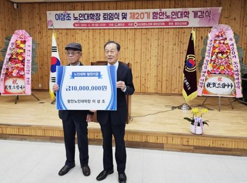 [½Åµ¿¾Æ¹æ¼Û ÇÔ¾È=À̽ŵ¿±âÀÚ]Áö³­´Þ 29ÀÏ ¿­¸° (»ç)´ëÇѳëÀÎȸ ÇԾȱºÁöȸ(ÁöȸÀå ÀÌÇе¿) ºÎ¼³ ÇԾȳëÀδëÇÐ °³°­½Ä¿¡¼­ ÀÌ»óÁ¶ ÇԾȳëÀδëÇÐÀåÀÌ ¹ßÀü±â±Ý 1000¸¸ ¿øÀ» ±âŹÇϸç Áö¿ª »çȸ¿¡¼­ È­Á¦°¡ µÇ°í ÀÖ´Ù. À̳¯ °³°­½Ä¿¡¼­´Â ÀÌ»óÁ¶ ÇÐÀåÀÇ ÅðÀӽĵµ ÇÔ²²¡¦