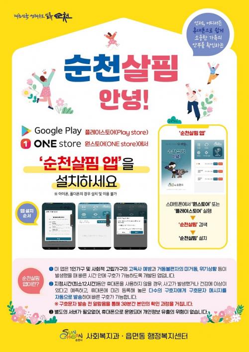 [½Åµ¿¾Æ¹æ¼Û ¼øÃµ=±è¿ëÈÆ ±âÀÚ] ¼øÃµ½Ã(½ÃÀå ³ë°ü±Ô)´Â 1ÀÎ °¡±¸ ¹× Ãë¾à°èÃþÀÇ À§±â»óȲ ¿¹¹æÀ» À§ÇØ¡®¼øÃµ »ìÇË ¾Û¡¯À» µµÀÔÇϰí Áö³­ 5ÀϺÎÅÍ º»°Ý ¿î¿µ¿¡ ³ª¼¹´Ù°í ¹àÇû´Ù. ¡®¼øÃµ »ìÇË ¾Û¡¯Àº ÁöÁ¤ÇÑ ½Ã°£(ÃÖ¼Ò 12½Ã°£) ÀÌ»ó ÈÞ´ëÀüÈ­ »ç¿ëÀÌ ¾øÀ» ¶§ »çÀü µî·Ï¡¦
