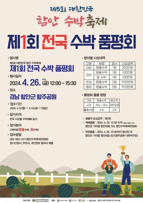 [½Åµ¿¾Æ¹æ¼Û ÇÔ¾È=À̽ŵ¿±âÀÚ]ÇԾȱºÀº ´ëÇѹα¹ ¼ö¹Ú»ê¾÷ ¹ßÀüÀ» ¼±µµÇϰí Àü±¹ ¼ö¹Ú »ý»êÀÚµéÀÇ È­ÇÕ°ú ÀÚ±à½ÉÀ» ³ôÀ̱â À§ÇØ ÀÌ´Þ 26ÀÏ Á¦1ȸ Àü±¹ ¼ö¹ÚǰÆòȸ¸¦ °³ÃÖÇÏ°í ¿À´Â 19ÀϱîÁö ½ÅûÁ¢¼ö ¹Þ´Â´Ù°í ¹àÇû´Ù. Âü°¡ ÀÚ°ÝÀº Àü±¹ ¼ö¹Ú »ý»êÀÚ ³ó¾÷ÀÎÀ¸·Î °¢¡¦