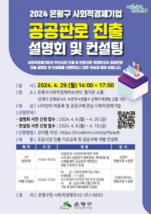 ÀºÆò±¸, 2024³â »çȸÀû°æÁ¦ °ø°øÆÇ·Î ÁøÃâ ¼³¸íȸ ¹× ÄÁ¼³ÆÃ °³ÃÖ