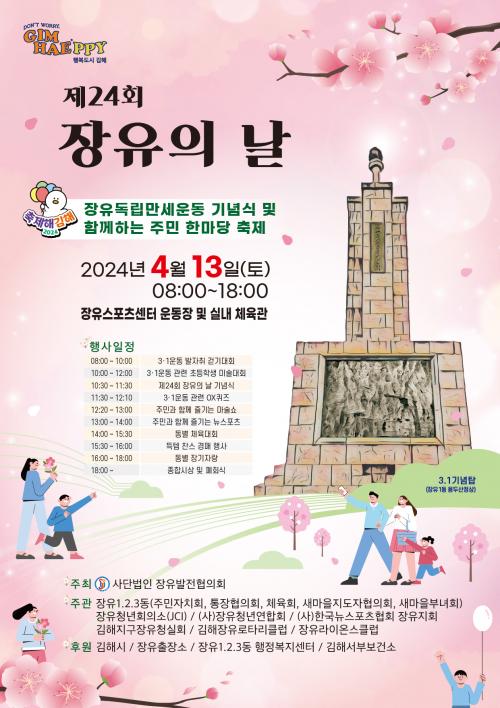 [½Åµ¿¾Æ¹æ¼Û´º½º=ÃÖ¼ÛÈ­±âÀÚ] 1919³â(±â¹Ì³â) ±èÇØ ÃÖ´ë ±Ô¸ð µ¶¸³¸¸¼¼¿îµ¿ÀÎ ÀåÀ¯ ÀǰŸ¦ ±â³äÇÑ Á¦24ȸ ÀåÀ¯ÀÇ ³¯ Çà»ç°¡ ¿À´Â 13ÀÏ ÀåÀ¯½ºÆ÷Ã÷¼¾ÅÍ ¿îµ¿Àå¿¡¼­ °³ÃֵȴÙ. ÀåÀ¯¹ßÀüÇùÀÇȸ(´ëÇ¥ ¹Ú´ëÁØ)¿¡¼­ ÁÖÃÖÇÏ´Â ¿ÃÇØ Çà»ç´Â Å©°Ô ÀåÀ¯ µ¶¸³¸¸¼¼¿îµ¿ ±â³ä½Ä¡¦