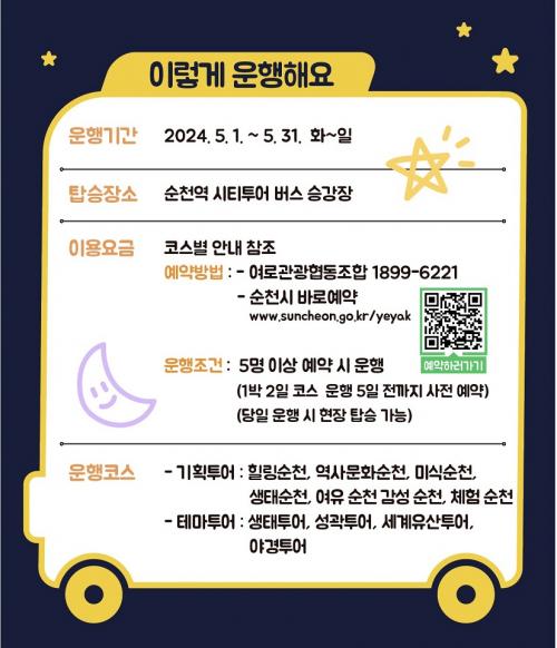 [½Åµ¿¾Æ¹æ¼Û ¼øÃµ=±è¿ëÈÆ ±âÀÚ] ¼øÃµ½Ã(½ÃÀå ³ë°ü±Ô)´Â ¼øÃµ½ÃƼÅõ¾î 5¿ù ±âȹ ÄÚ½º¸¦ ¿îÇàÇÑ´Ù°í ¹àÇû´Ù. ½ÃƼÅõ¾î ¹ö½ºÅ¸°í ¡®´Þµð´Þ°í ´Þµð´Ü ¹ã¼øÃµ, º½¼øÃµ¡¯À̶ó´Â ÁÖÁ¦·Î ¼øÃµÀÇ ³·»Ó¸¸ ¾Æ´Ï¶ó ¹ãµµ Áñ±æ ¼ö ÀÖ´Â ÄÚ½º¸¦ ¼±º¸ÀδÙ. 5¿ù ±âȹÅõ¾î¿¡ ¾ß°£ ÄÚ½º¡¦