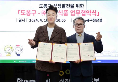 [½Åµ¿¾Æ¹æ¼Û µµºÀ±¸=À̽ŵ¿±âÀÚ]µµºÀ±¸°¡ 4¿ù 16ÀÏ ¢ßâÁ¶½Äǰ°ú Àú¼ÒµæÃþ¿¡ ¸Ô°Å¸®¸¦ Áö¿øÇÏ´Â ¾÷¹« Çù¾àÀ» ü°áÇß´Ù. Çù¾à¿¡ µû¶ó ¢ßâÁ¶½ÄǰÀº µµºÀ±¸¿¡ ¿¬°£ 3õ 8¹é¸¸¿ø »ó´ç(6,300ÀκÐ)ÀÇ ¸Ô°Å¸®¸¦ ÈÄ¿øÇÏ°í ±¸´Â µ¿Áֹμ¾Å͸¦ ÅëÇØ ÈÄ¿ø¹ÞÀº ¸Ô°Å¸®¸¦ Áö¿ª ³»¡¦