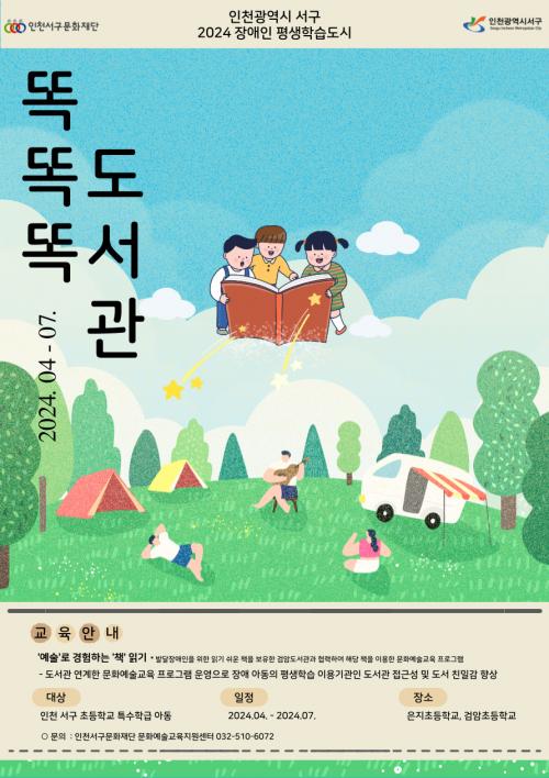 [½Åµ¿¾Æ¹æ¼Û ÀÎõ= À±¹Î½Ä±âÀÚ]ÀÎõ¼­±¸¹®È­Àç´Ü ¹®È­¿¹¼ú±³À°Áö¿ø¼¾ÅÍ´Â 2024³â Àå¾ÖÀÎ Æò»ýÇнÀµµ½Ã »ç¾÷ÀÇ ÀÏȯÀ¸·Î 4¿ùºÎÅÍ 7¿ù±îÁö °ü³» ÃʵîÇб³ Ư¼öÇÐ±Þ ´ë»ó ¹®È­¿¹¼ú±³À°»ç¾÷À¸·Î <¶È¶È¶È, µµ¼­°ü>À» ÁøÇàÇÑ´Ù°í ¹àÇû´Ù. ÇØ´ç ÇÁ·Î±×·¥Àº ÀÎõ ¼­±¸ °ü³»¡¦