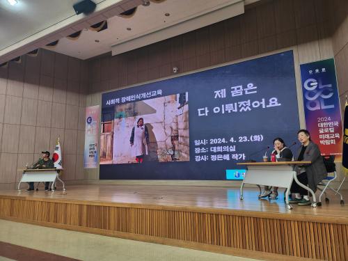 [½Åµ¿¾Æ¹æ¼Û Àü³²¿©¼ö=À̽ŵ¿±âÀÚ]Àü¶ó³²µµ±³À°Ã»Àº Á¦44ȸ Àå¾ÖÀÎÀÇ ³¯(4¿ù 20ÀÏ)À» ¸Â¾Æ º»Ã» Àü Á÷¿øÀ» ´ë»óÀ¸·Î ¡®´Ï ¾ó±¼¡¯ÀÇ Á¤ÀºÇý ÀÛ°¡¸¦ ÃÊÃ»ÇØ »çȸÀû Àå¾ÖÀνݳ¼±±³À°À» ½Ç½ÃÇß´Ù. °­»ç·Î ÃÊûµÈ Á¤ÀºÇý ÀÛ°¡´Â µå¶ó¸¶ ¡®¿ì¸®µéÀÇ ºí·ç½º¡¯¿Í ´ÙÅ¥¸àÅ͸®¡¦