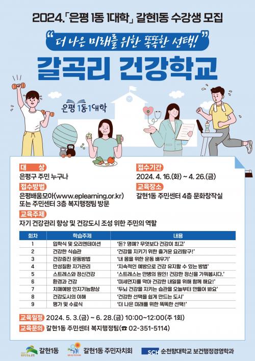 °¥Çö1µ¿, ÀºÆò 1µ¿-1´ëÇÐ ¡®°¥°î¸® °Ç°­Çб³¡¯ ¼ö°­»ý ¸ðÁý