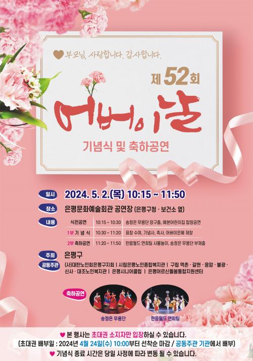 [½Åµ¿¾Æ¹æ¼Û ÀºÆò±¸=À̽ŵ¿±âÀÚ]ÀºÆò±¸´Â ³»´Þ 2ÀÏ ÀºÆò¹®È­¿¹¼úȸ°ü °ø¿¬Àå¿¡¼­ Áö¿ª ¾î¸£½Å 700¿© ¸íÀ» ¸ð½Ã°í ¡®Á¦52ȸ ¾î¹öÀ̳¯ ±â³äÇà»ç¡¯¸¦ °³ÃÖÇÑ´Ù°í ¹àÇû´Ù. À̹ø Çà»ç´Â ¸ðµç ¾î¹öÀ̲² °¨»ç¿Í Á¸°æÀÇ Àǹ̸¦ Ç¥Çϰí, ¿ì¸® »çȸ¿¡ °æ·ÎȿģÀÇ »çȸÀû ºÐÀ§±â¡¦