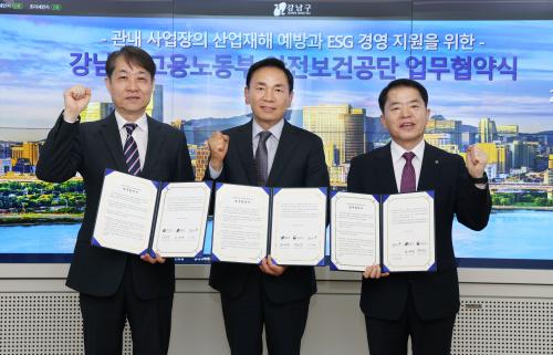 [½Åµ¿¾Æ¹æ¼Û °­³²±¸=À̽ŵ¿±âÀÚ]°­³²±¸°¡ 29ÀÏ ±¸Ã»¿¡¼­ °í¿ë³ëµ¿ºÎ ¼­¿ï°­³²Áöû, ¾ÈÀüº¸°Ç°ø´Ü ¼­¿ï±¤¿ªº»ºÎ¿Í ÇÔ²² Áß´ëÀçÇØ ¿¹¹æÀ» À§ÇÑ ¾÷¹«Çù¾àÀ» ü°áÇß´Ù. Áö³­ 1¿ù 27ÀϺÎÅÍ Áß´ëÀçÇØÃ³¹ú¹ýÀÌ 5ÀÎ ÀÌ»ó 50ÀÎ ¹Ì¸¸ »ç¾÷Àå ¹× °ø»ç±Ý¾× 50¾ï ¿ø ¹Ì¸¸ °Ç¼³ ÇöÀ塦