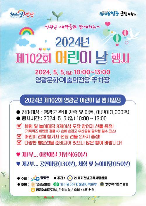 [½Åµ¿¾Æ¹æ¼Û=ÀÌÁöÇö±âÀÚ] ¿µ±¤±ºÀº 5¿ù 5ÀÏ(ÀÏ) ¾î¸°À̳¯À» ¸Â¾Æ ¿ÀÀü 10½ÃºÎÅÍ ¿ÀÈÄ 1½Ã±îÁö ¿µ±¤¹®È­¿¹¼úÀÇÀü´ç(ÁÖÂ÷Àå)¿¡¼­ Á¦102ȸ ¾î¸°À̳¯ Çà»ç¸¦ °³ÃÖÇÑ´Ù. À̹ø Çà»ç´Â °ü³» ¾î¸°À̵éÀÌ °¡±î¿î °÷¿¡¼­ °¡Á·°ú ÇÔ²² ¸¶À½²¯ ¶Ù°í Áñ±æ ¼ö ÀÖµµ·Ï ´Ùä·Î¿î ÇÁ·Î¡¦