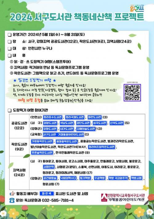 [½Åµ¿¾Æ¹æ¼Û ÀÎõ= À±¹Î½Ä ±âÀÚ]ÀÎõ±¤¿ª½Ã±³À°Ã»¼­±¸µµ¼­°ü(°üÀå ¹ÚÁ¤Èñ)Àº Áö¿ª ¼­Á¡, ÀÛÀºµµ¼­°ü ÀÌ¿ëÀ» Ȱ¼ºÈ­Çϰí Áö¿ª»çȸ µ¶¼­¹®È­ °ø°£ È®´ë¸¦ À§ÇØ ¡¸Ã¥µ¿³×»êÃ¥ ÇÁ·ÎÁ§Æ®¡¹ »ç¾÷À» 5¿ùºÎÅÍ 8¿ù±îÁö ¼­±¸, °­È­±º ¼ÒÀç ½Ã・±º・±¸¸³ °ø°øµµ¼­°ü, ¡¦
