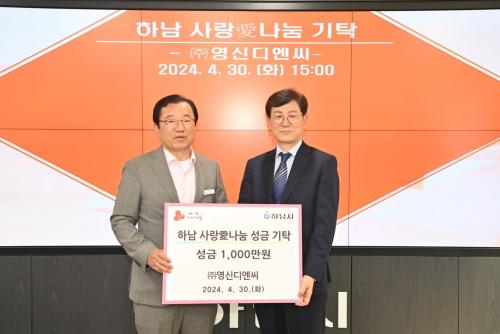 [½Åµ¿¾Æ¹æ¼Û Çϳ²½Ã=À̽ŵ¿±âÀÚ]Áö³­ 30ÀÏ Çϳ²½Ã dz»êµ¿¿¡ ¼ÒÀçÇÑ ¢ß¿µ½Åµð¿£¾¾¿¡¼­ Çϳ² »ç¶ûäñ³ª´® ¼º±ÝÀ¸·Î 1,000¸¸¿øÀ» Àü´ÞÇÏ°í ±âŹ½ÄÀ» °¡Á³´Ù. À̳¯ ±âŹ½Ä¿¡´Â ÀÌÇöÀç Çϳ²½ÃÀåÀ» ºñ·ÔÇÏ¿© ¢ß¿µ½Åµð¿£¾¾ ±è¼ºÁø ´ëÇ¥ÀÌ»ç, ±â¾÷ÀÎÇùÀÇȸ ÀÌÈñ±Ù ȸÀå, ±èµ¿¡¦