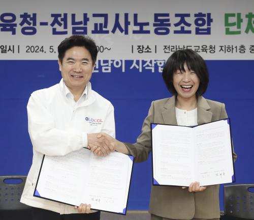 [½Åµ¿¾Æ¹æ¼Û Àü³²¿©¼ö=À̽ŵ¿±âÀÚ]Àü¶ó³²µµ±³À°Ã»(±³À°°¨ ±è´ëÁß)°ú Àü³²±³»ç³ëµ¿Á¶ÇÕ(À§¿øÀå ±è½Å¾È)Àº 5¿ù 8ÀÏ(¼ö) Àü¶ó³²µµ±³À°Ã» ÁßȸÀǽǿ¡¼­ ³ë»ç ¾çÃø °ü°èÀÚµéÀÌ Âü¼®ÇÑ °¡¿îµ¥ ¡®2020 ´ÜüÇù¾à¡¯À» ü°áÇß´Ù. À̳¯ ü°á½Ä¿¡´Â ±è´ëÁß ±³À°°¨°ú Àü³²±³»ç³ëÁ¶¡¦
