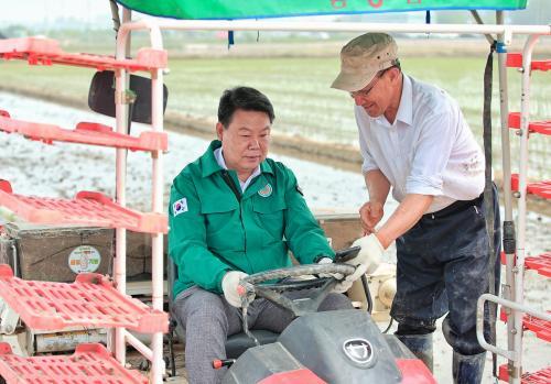 [½Åµ¿¾Æ¹æ¼Û=ÀÌÀçö ±âÀÚ] ¿À¼ºÈ¯ ´çÁø½ÃÀåÀÌ 22ÀÏ ½ÅÆò¸é ½ÅÈ︮ À̺´¼· ³ó°¡¿¡¼­ Áö¿ªÁֹΰú ³óÇù °ü°èÀÚ µî 30¿© ¸íÀÌ Âü¼®ÇÑ °¡¿îµ¥ dz³â ³ó»ç¸¦ ±â¿øÇÏ´Â ¸ð³»±â¸¦ ½Ã¿¬Çß´Ù. ¿À ½ÃÀåÀº Á÷Á¢ À̾ӱ⸦ ¿îÀüÇÏ¸ç ¸ð³»±â ½Ã¿¬À» ÇÑ µÚ Âü¼®ÀÚµé°ú ¿ÀÂùÀ» ³ª´©¸ç¡¦