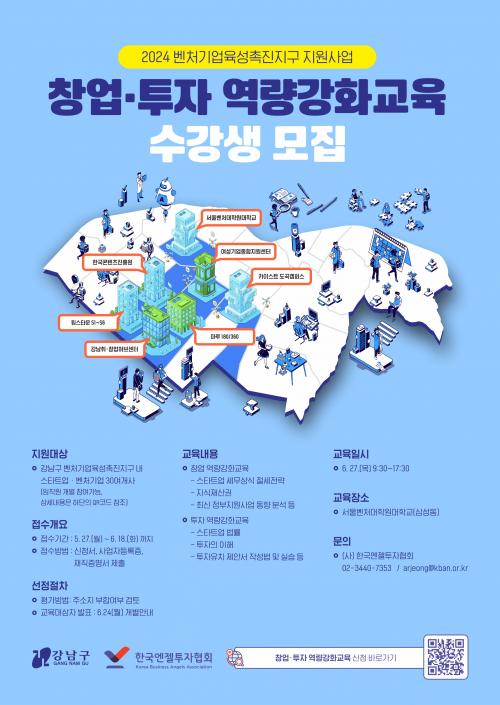 [½Åµ¿¾Æ¹æ¼Û °­³²±¸=À̽ŵ¿±âÀÚ]°­³²±¸°¡ 2024 °­³²±¸ º¥Ã³±â¾÷À°¼ºÃËÁøÁö±¸ Áö¿ø»ç¾÷À» ÃßÁøÇÑ´Ù. ±× ù ¹øÂ° ÇÁ·Î±×·¥ÀΠâ¾÷ ÅõÀÚ ¿ª·®°­È­ ±³À°¿¡ Âü°¡ÇÒ À¯¸Á ½ºÅ¸Æ®¾÷À» 6¿ù 18ÀϱîÁö ¸ðÁýÇÑ´Ù. °­³²±¸ º¥Ã³±â¾÷À°¼ºÃËÁøÁö±¸´Â ¿ª»ïµ¿ 747-2¹øÁö ÀÏ¿ø(A±¸¿ª),¡¦