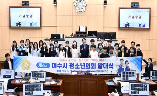[½Åµ¿¾Æ¹æ¼Û¿©¼ö=±è±â³² ±âÀÚ] ¿©¼ö½ÃÀÇȸ(ÀÇÀå ±è¿µ±Ô)´Â 5¿ù 31ÀÏ ÀÇȸ º»È¸ÀÇÀå¿¡¼­ ¡¸Á¦6±â ¿©¼ö½Ã û¼Ò³âÀÇȸ¡¹ ¹ß´ë½ÄÀ» °³ÃÖÇß´Ù. û¼Ò³âÀÇȸ´Â ¹Ì·¡ ¼¼´ëÀÇ ÁÖ¿ªÀΠû¼Ò³âµéÀÌ Áö¿ª¿¡ ÇÊ¿äÇÑ Á¤Ã¥À» Á¦¾ÈÇϰí À̸¦ ½ÃÁ¤¿¡ ¹Ý¿µÇÏ´Â ¹ÎÁÖÁÖÀÇ ÀÇ»ç°áÁ¤À» Á÷¡¦