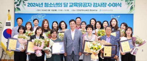 [½Åµ¿¾Æ¹æ¼Û ÀÎõ= À±¹Î½Ä±âÀÚ]ÀÎõ±¤¿ª½Ã±³À°Ã»(±³À°°¨ µµ¼ºÈÆ)Àº 10ÀÏ Ã»¼Ò³â À°¼º¿¡ Çå½ÅÇÑ ±³À°À¯°øÀÚ 15¸í¿¡°Ô °¨»çÀåÀ» ¼ö¿©Çß´Ù. û¼Ò³âÀÇ ´Þ ±³À°À¯°øÀÚ´Â ÀåÇÐ »ç¾÷, Çлý ºÀ»çȰµ¿ Áö¿ø, Çб³Æø·Â ¿¹¹æ Ȱµ¿, û¼Ò³â Ȱµ¿ Áö¿ø µî 6°³ ºÐ¾ß¿¡¼­ û¼Ò³â À°¡¦