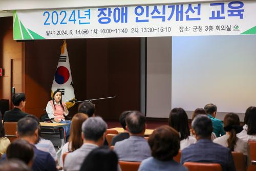 [½Åµ¿¾Æ¹æ¼Û ÇԾȱº=À̽ŵ¿±âÀÚ]ÇԾȱºÀº 14ÀÏ ±ºÃ» 3Ãþ ´ëȸÀǽǿ¡¼­ Á÷¿øµéÀ» ´ë»óÀ¸·Î Àå¾ÖÀο¡ ´ëÇÑ »çȸÀû Æí°ß°ú Â÷º°À» Á¦°ÅÇϰí Àå¾ÖÀΰú ºñÀå¾ÖÀÎÀÌ ÇÔ²²ÇÏ¸ç ÆòµîÀ¸·Î »çȸÅëÇÕÀ» À§ÇÑ Àå¾Ö Àνݳ¼± ±³À°À» ½Ç½ÃÇß´Ù. À̹ø ±³À°Àº Çѱ¹Àå¾ÖÀΰ³¹ß¿ø Àå¾Ö¡¦