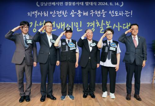 [½Åµ¿¾Æ¹æ¼Û °­³²±¸=À̽ŵ¿±âÀÚ]°­³²±¸°¡ 14ÀÏ °­³²±¸ »ï¼º2¹®È­¼¾ÅÍ 7Ãþ ´ë°­´ç¿¡¼­ ¡®°­³²¼±¹è½Ã¹Î °æÂûºÀ»ç´ë¡¯ ¹ß´ë½ÄÀ» °³ÃÖÇß´Ù. °ü³» ¾î¸£½Å 60¸íÀ¸·Î ±¸¼ºµÈ ¡®°­³²¼±¹è½Ã¹Î °æÂûºÀ»ç´ë¡¯´Â ÀÚ¹ßÀûÀÎ »çȸ°øÇåȰµ¿ ´Üü´Ù. ¾î¸£½ÅµéÀÌ Áö¿ª»çȸÀÇ ÀÏ¿øÀ¸·Î¼­¡¦