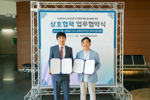 [½Åµ¿¾Æ¹æ¼Û´º½º=ÀÌÁ¶Àº±âÀÚ] (Àç)±èÇØ¹®È­Àç´Ü(´ëÇ¥ÀÌ»ç ÃÖ¼®Ã¶)Àº Áö³­ 18ÀÏ(È­) ¿ÀÈÄ 4½Ã ½Å¼¼°è¹éÈ­Á¡(´ëÇ¥ÀÌ»ç ¹ÚÁÖÇü)°ú ±èÇØÁö¿ª ¿¹¼ú°¡ ¹× âÀÛÀÚÀÇ »óǰ ÆÇ·ÎÁö¿ø°ú °øµ¿¸¶ÄÉÆÃ È°¼ºÈ­ µî ´Ù°¢ÀûÀÎ ±³·ù¿Í Çù·Â »ç¾÷À» ÃßÁøÀ» À§ÇÑ ¾÷¹« Çù¾àÀ» ü°áÇß´Ù. ¡¦