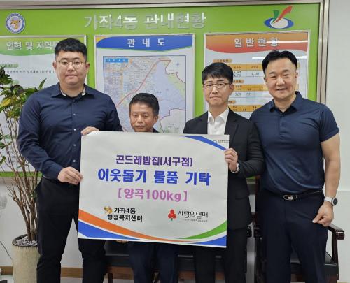[½Åµ¿¾Æ¹æ¼Û ÀÎõ= À±¹Î½Ä±âÀÚ]ÀÎõ ¼­±¸ ½É°îµ¿ ¼ÒÀçÀÇ °ïµå·¹¹äÁý ¼­±¸Á¡(´ëÇ¥ ±è¿µÁÖ), Àλý°Ç¾î¹°(´ëÇ¥ °íÇü±â)Àº Áö³­ 21ÀÏ °¡ÁÂ4µ¿ÀÇ °ü³» ¾î·Á¿î ÀÌ¿ôÀ» À§ÇÑ ³ª´® Ȱµ¿À¸·Î ¾ç°î 100kgÀ» °¡ÁÂ4µ¿ Áö¿ª»çȸº¸ÀåÇùÀÇü(µ¿Àå ¹é½ÂÈ£, °øµ¿À§¿øÀå Á¤°èÈ­)¿¡ Àü´ÞÇß¡¦