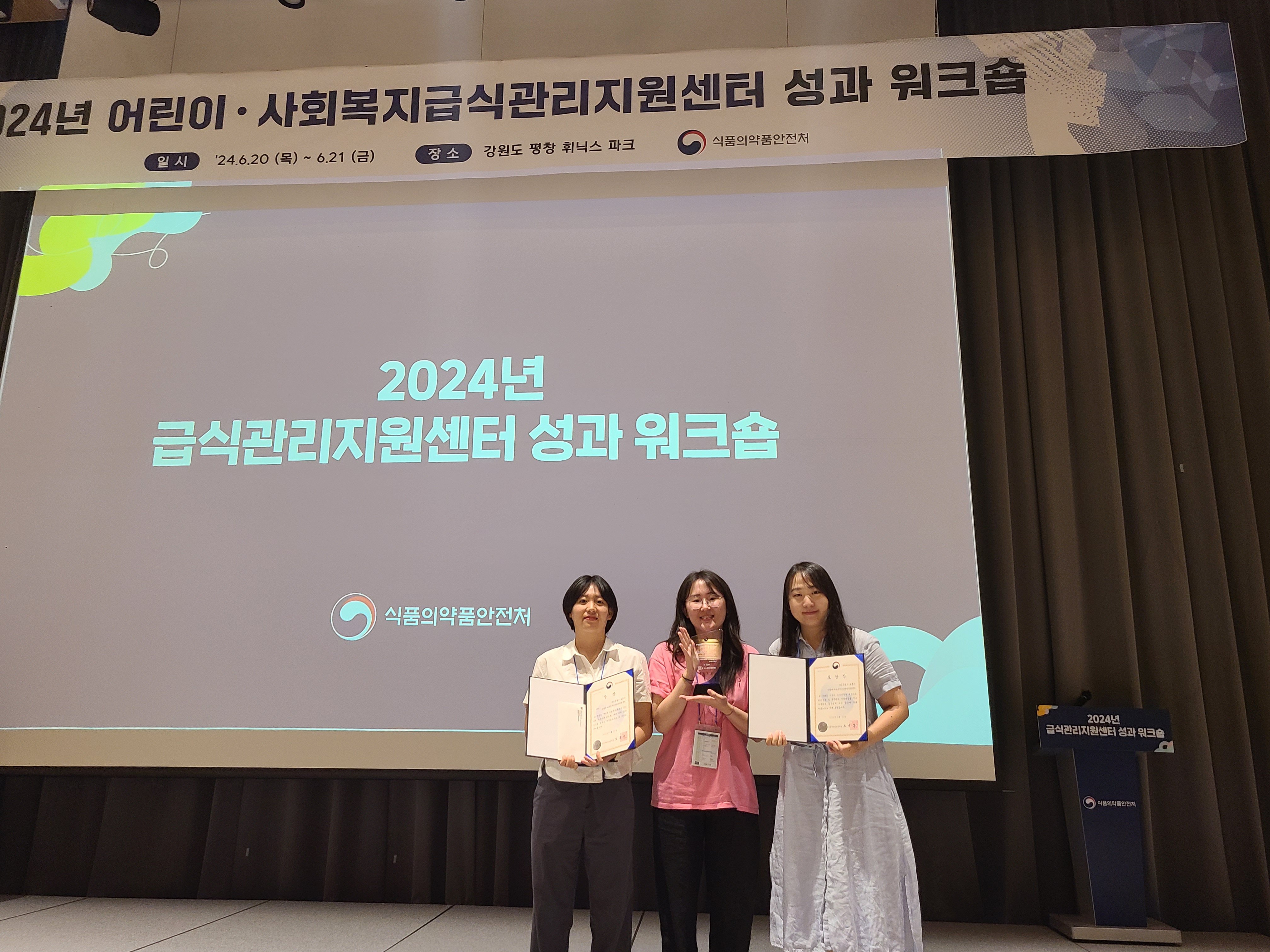 µµºÀ±¸ ¾î¸°ÀÌ‧»çȸº¹Áö±Þ½Ä°ü¸®Áö¿ø¼¾ÅÍ, ½Ä¾àó ÁÖ°ü ±Þ½Ä¾ÈÀü°ü¸® À¯°øÇ¥Ã¢ ¼ö»ó