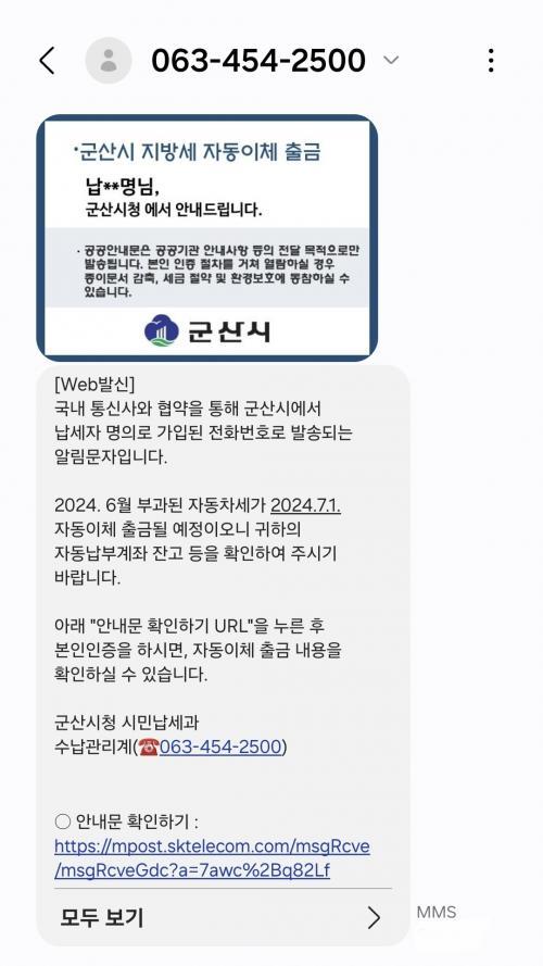 [½Åµ¿¾Æ¹æ¼Û=À̺´½Ä±âÀÚ] ±º»ê½Ã°¡ ÀÚµ¿Â÷¼¼, Àç»ê¼¼, Áֹμ¼, µî·Ï¸éÇã¼¼ Á¤±âºÐ ºÎ°ú¿ù ÀÚµ¿ÀÌüÀÏ(³³ºÎ±âÇÑ) Àü¿¡ Áö¹æ¼¼ ÀÚµ¿³³ºÎ(°èÁ ÀÚµ¿ÀÌü)¸¦ ½ÅûÇÑ ³³ºÎ´ë»óÀÚ¿¡°Ô ÅëÀå Àܰí È®ÀÎ ¾È³» ¹®ÀÚ¸¦ ¹ß¼ÛÇÑ´Ù°í ¹àÇû´Ù. ÀÚµ¿³³ºÎ¼­ºñ½º´Â ÇÑ ¹øÀÇ ½ÅûÀ¸·Î Áö¡¦