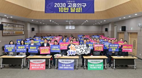 [½Åµ¿¾Æ¹æ¼Û°íÈï=¹Ú±¤¿Á±âÀÚ] °íÈﱺ(±º¼ö °ø¿µ¹Î)Àº Áö³­ 1ÀÏ ¹Î¼± 8±â ÃëÀÓ 2ÁÖ³âÀ» ¸Â¾Æ Á÷¿ø ¼ÒÅëÀÇ ³¯°ú ¡®2030 °íÈï Àα¸ 10¸¸ ´Þ¼º¡¯À» À§ÇÑ ÁֹΠ°£´ãȸ¸¦ °³ÃÖÇß´Ù°í ¹àÇû´Ù. Á÷¿ø ¼ÒÅëÀÇ ³¯Àº ±ºÃ» ¿ìÁÖȦ¿¡¼­ °£ºÎ °ø¹«¿ø µî 100¿© ¸íÀÇ Á÷¿øÀÌ Âü¼®ÇÑ °¡¡¦