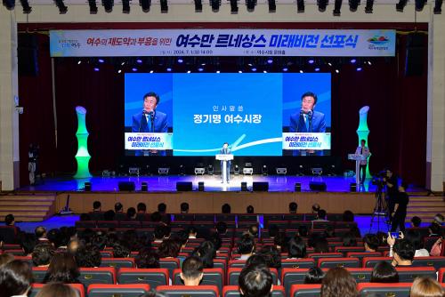 [½Åµ¿¾Æ¹æ¼Û¿©¼ö=±è±â³² ±âÀÚ] Á¤È®È÷ ¹Î¼± 8±â Á¤±â¸í ¿©¼ö½ÃÀå ÃëÀÓ 2³â°ÀÎ Áö³­ 1ÀÏ, Á¤ ½ÃÀåÀº ½Ãû ¹®È­È¦¿¡¼­ ¡®¿©¼ö¸¸ ¸£³×»ó½º ¹Ì·¡ ºñÀü ¼±Æ÷½Ä¡¯À» °¡Á³´Ù. Á¤ ½ÃÀåÀº À̳¯ Á÷Á¢ ¸¶ÀÌÅ©¸¦ Àâ°í ¡®¿©¼ö¸¸ ¸£³×»ó½º ÇÁ·ÎÁ§Æ®¡¯ÀÇ Ã»»çÁø°ú ¹Ì·¡ ºñÀüÀ»¡¦