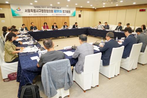 [½Åµ¿¾Æ¹æ¼Û µ¿´ë¹®±¸=À̽ŵ¿±âÀÚ]¼­¿ïƯº°½Ã±¸Ã»ÀåÇùÀÇȸ(ÇùÀÇȸÀå ÀÌÇÊÇü µ¿´ë¹®±¸Ã»Àå, ÀÌÇÏ ¡®ÇùÀÇȸ¡¯)´Â 7¿ù 10ÀÏ(¼ö) ¼­¿ï½Ãû 8Ãþ °£´ãȸÀå¿¡¼­ ¹Î¼±8±â 3Â÷³âµµÀÇ Ã¹ ¹øÂ° ȸÀÇÀÎ Á¦191Â÷ Á¤±âȸÀǸ¦ °³ÃÖÇÏ¿´´Ù. ÀÌÇÊÇü ÇùÀÇȸÀåÀ» ºñ·ÔÇÑ 23°³±¸ ±¸Ã»Àå(ºÎ¡¦