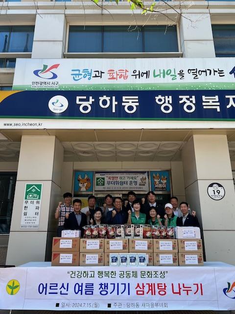 [½Åµ¿¾Æ¹æ¼Û ÀÎõ= À±¹Î½Ä±âÀÚ] ÀÎõ ¼­±¸ ´çÇϵ¿ »õ¸¶À»ºÎ³àȸ(ȸÀå ±è¸í¼ø)´Â Áö³­ 15ÀÏ Ãʺ¹À» ¸Â¾Æ ¹«´õÀ§·Î Èûµç ¿©¸§À» º¸³»°í ÀÖ´Â ¾î¸£½ÅµéÀÇ °Ç°­À» ±â¿øÇϱâ À§ÇÑ »ï°èÅÁ ³ª´®Çà»ç¸¦ °³ÃÖÇß´Ù. ƯÈ÷ À̹ø ³ª´® Çà»ç´Â ÃÌÀå°ñ(´ëÇ¥ ±è¼º±Ô) Çѿ켳··ÅÁ ¡¦