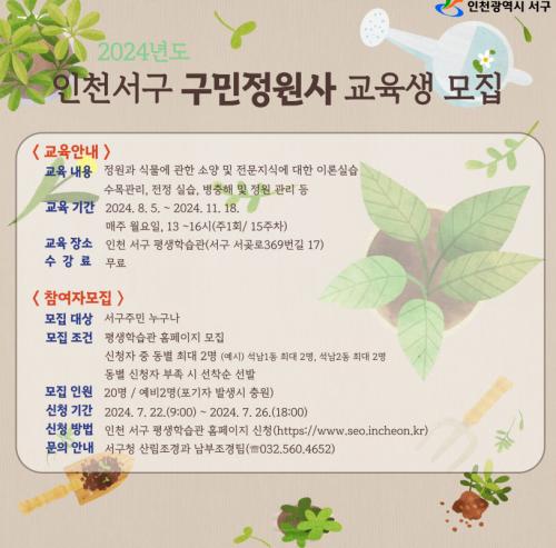 [½Åµ¿¾Æ¹æ¼Û ÀÎõ= À±¹Î½Ä±âÀÚ] ÀÎõ ¼­±¸(±¸Ã»Àå °­¹ü¼®)´Â 2024³â ÇϹݱ⠱¸¹ÎÁ¤¿ø»ç ¾ç¼º°úÁ¤À» ÁøÇàÇÑ´Ù°í ¹àÇû´Ù. ±¸¹ÎÁ¤¿ø»ç ¾ç¼º ±³À°Àº ½Ä¹°°ú Á¤¿ø¿¡ °ü½ÉÀÌ ÀÖ´Â ±¸¹ÎÀ» ´ë»óÀ¸·Î ÇÏ´Â Àü¹®ÀûÀ̰í ü°èÀûÀÎ ±³À°ÇÁ·Î±×·¥À¸·Î ½Ç·ÂÀÖ´Â ±¸¹ÎÁ¤¿ø»ç¸¦ ¾ç¡¦