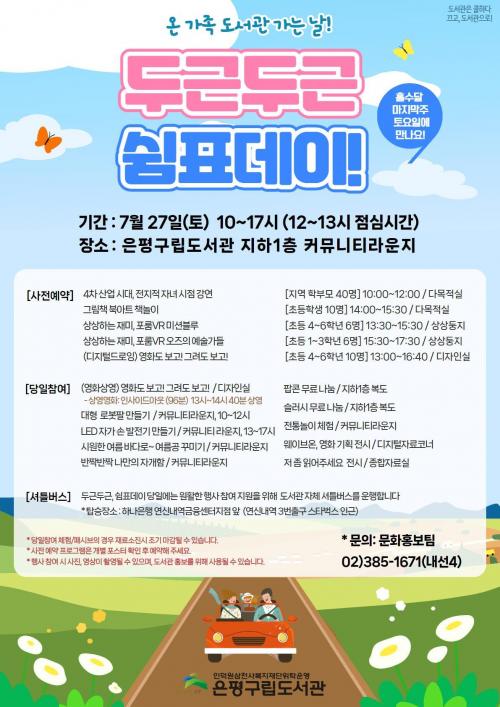 [½Åµ¿¾Æ¹æ¼Û=À̽ŵ¿±âÀÚ] ÀºÆò±¸(±¸Ã»Àå ±è¹Ì°æ)´Â 7¿ù ¡®µÎ±ÙµÎ±Ù, ½°Ç¥µ¥ÀÌ!¡¯¸¦ ¿À´Â 27ÀÏ ¿î¿µÇÑ´Ù°í ¹àÇû´Ù. 7¿ù ¡®µÎ±ÙµÎ±Ù, ½°Ç¥µ¥ÀÌ!¡¯´Â ¡®¿Â °¡Á·ÀÌ ÇÔ²² µµ¼­°ü¿¡ °¡´Â ³¯¡¯À» ÁÖÁ¦·Î ¼­¿ïµµ¼­°ü¿¡¼­ ÃßÁø ÁßÀΠź¼Ò ¹èÃâ·® Àý°¨ Ä·ÆäÀÎ ¡®²ô°í, µµ¼­°üÀ¸¡¦