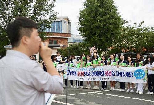 [½Åµ¿¾Æ¹æ¼Û=À̽ŵ¿±âÀÚ] 17ÀÏ ¿ÀÀü 8½Ã ¿µ»êÆ÷¿©ÀÚÁßÇб³¿¡¼­´Â Çб³Æø·Â ZERO¸¦ ¼Ò¸ÁÇÏ´Â ÇлýµéÀÇ ¡®µî±·±æ Çູ ¹ö½ºÅ·¡¯ÀÌ ¿­·Á ´«±æÀ» ²ø¾ú´Ù. ÇлýµéÀº ¡®Æø·Â ¾ø´Â ÇູÇÑ ¿ì¸® Çб³¡¯°¡ ÀûÈù Çö¼ö¸· ¾Æ·¡¼­ Ȱ±âÂù ¾ÆÄ§À» ¿©´Â ´ëÁß°¡¿ä‧OST µîÀ» ¿­Ã¢¡¦