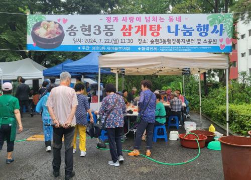 [½Åµ¿¾Æ¹æ¼Û ÀÎõ= À±¹Î½Ä±âÀÚ] ÀÎõ µ¿±¸ ¼ÛÇö3µ¿(µ¿Àå Àå¹Ì¾Ö)Àº Áö³­ 22ÀÏ °ü³» »õ¸¶À»ºÎ³àȸ(ȸÀå È£¿µÈñ), ÀÚ»ý´Üü ȸ¿øµé°ú ¼ÛÇö3µ¿ ÇàÁ¤º¹Áö¼¾ÅÍ¿¡¼­ ¾î¸£½ÅµéÀ» À§ÇÑ »ï°èÅÁ ³ª´®Çà»ç¸¦ °³ÃÖÇß´Ù°í ¹àÇû´Ù. À̹ø ³ª´®Çà»ç¿¡´Â ±ÄÀº ³¯¾¾¿¡µµ »õ¸¶À»ºÎ³àȸ¡¦